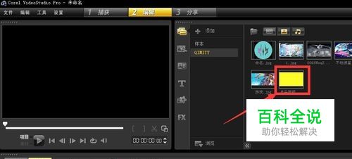 打开会声会影,这里小编安装的是X5,其他版本也同样适用。找到你想要作为视频背景的图片或者视频。这里小编准备将这张黄色的图片设置为全屏背景。