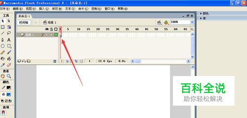 在新建文档后,画面中是不是空白的?这时在时间轴上的第一帧显示的是空心圆。这表示这是一个空白关键帧。