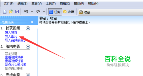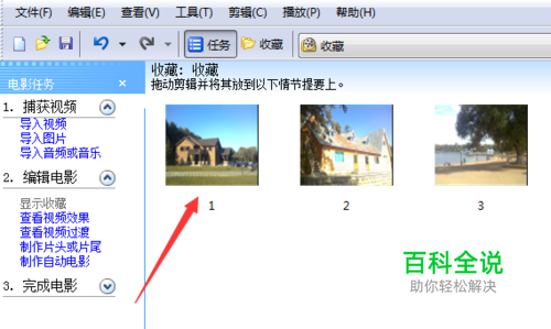 选中第一张图片,单击任务窗格里的查看视频效果,选择一种效果,右击,添加到时间线。