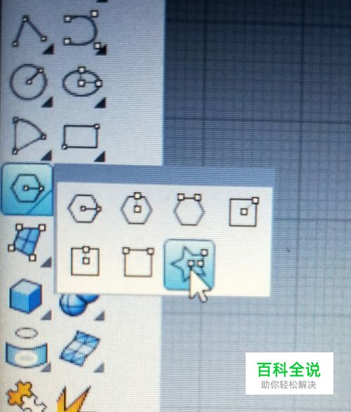 如下图所示,在左侧的标准栏下方点击我在下图中箭头所指示的“多边形”的图标下方的小三角形。