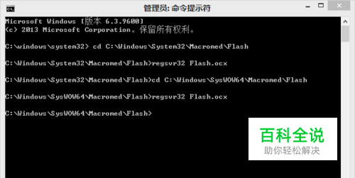 打开windows命令提示符(管理员),开始注册,输入以下命令: 先输入 cd C:\Windows\System32\Macromed\Flash 后按下回车键 在输入 regsvr32 Flash.ocx 后按下回车键 先输入 cd C:\Windows\SysWOW64\Macromed\Flash 后按下回车键 在输入 regsvr32 Flash.ocx 后按下回车键 会提示DllRegisterServer在Flash.ocx已成功。
