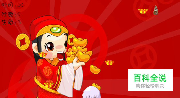 游戏简介 财神今天大显神威,大派元宝,大家一起去捡吧!不过怎么还会有闹钟和传说中的翔掉下来的,难道是财神昨晚吃得不好? 游戏目标: 合理控制人物收集到更多的元宝,挑战更高的分数 如何开始: 游戏加载完毕后点击[开始游戏]即可开始游戏 操作指南: 左右方向键控制移动(提示:收集到闹钟可以增加时间,收集到翔会损耗一点生命)