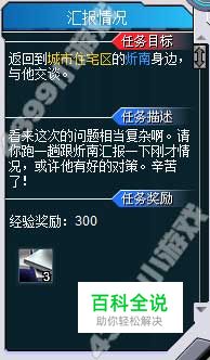 在城市住宅区向炘南汇报情况,完成任务并获得奖励。