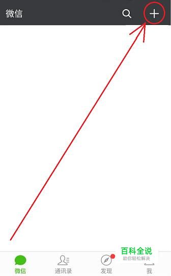 首先,打开手机微信,点击微信首页右上角的“+”选项。
