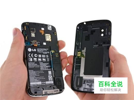 将手机后壳拆开,然后我们就会看到整个手机面板和电池。