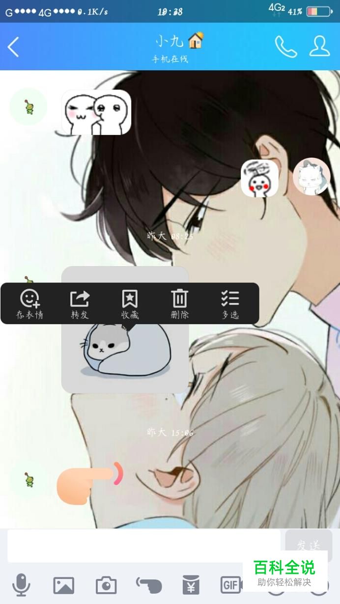 首先,我们选择好你要收藏的表情包,点击长按,就会出现一个和小编一样的图案,点击添加表情。