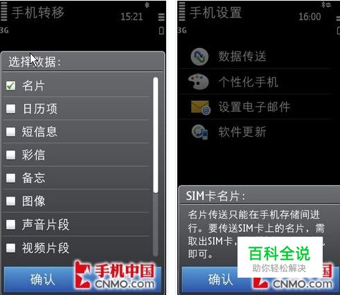 手机设置/数据传送 这种方法并不需要安装任何软件程序,是诺基亚手机自带的功能,但此功能往往被用户所忽略。按照:功能表——应用程序——工具——手机设置——数据传送逐级进入,最后选择“另一部手机”,即从另一部手机获取通讯录。