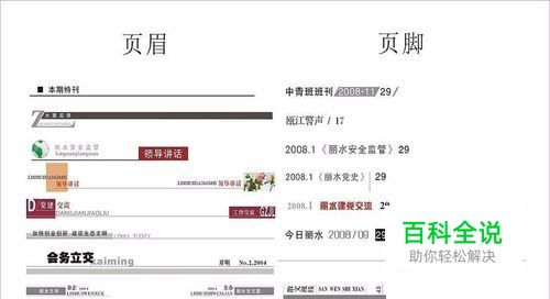 下图所示为一些页眉页脚的设计,可以看出,页眉页脚并不是简单的文字,而是可以进行精心设计,与正文形成互动的排版设计。