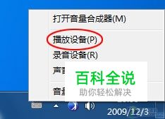 在Windows 7系统桌面上,右击声音图标,在弹出的菜单中选择“播放设备”(如图1): 图1