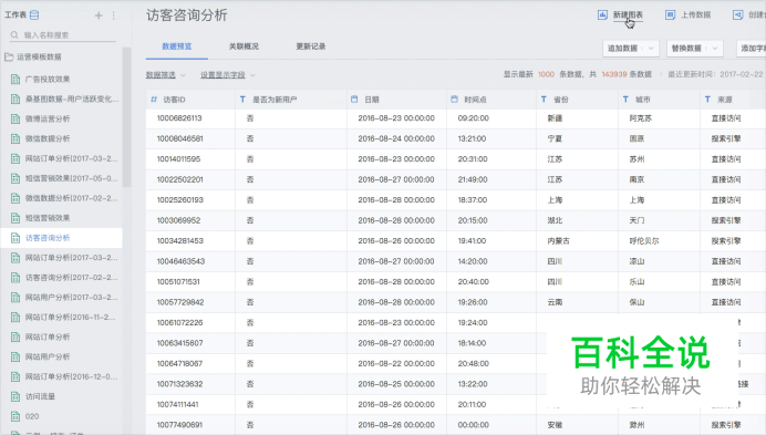 怎么实现双轴图? 小草莓有一份订单数据,并且想要分析不同时间段订单的销售额和利润额走势,那该如何操作呢? 操作① 将数据上传到BDP,在“工作表”界面的右上方点击“新建图表”—“普通图表”,跳转至图表编辑界面,如图~