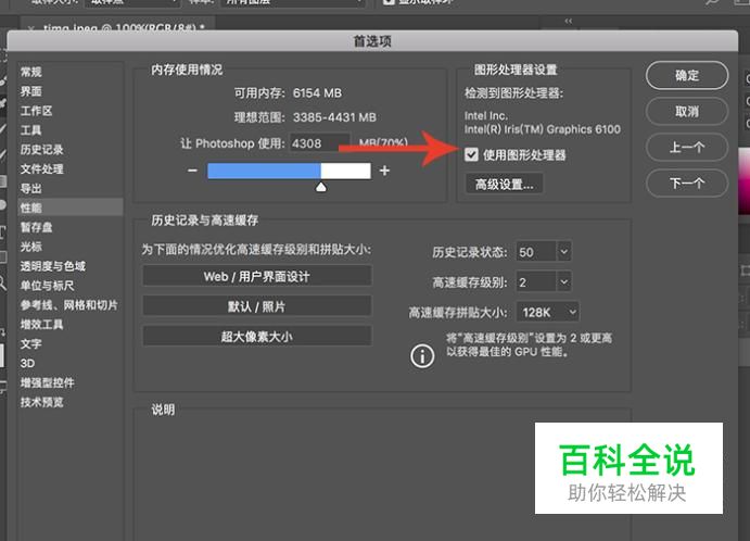 打开电脑中的PS软件,在进行制作之前,先进入首选项界面,在“性能”中将“使用图形处理器”勾选。