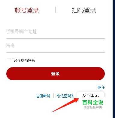 首先打开华为商城官网,然后点击右上角的登录进入到登录页面。然后点击“更多”进入安全中心。