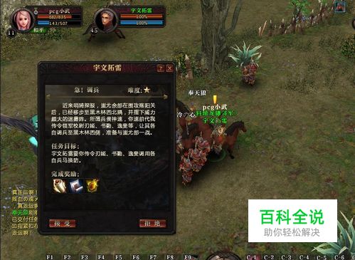 在黑木林找到将领宇文拓雷,并在宇文拓雷的手中接下任务。