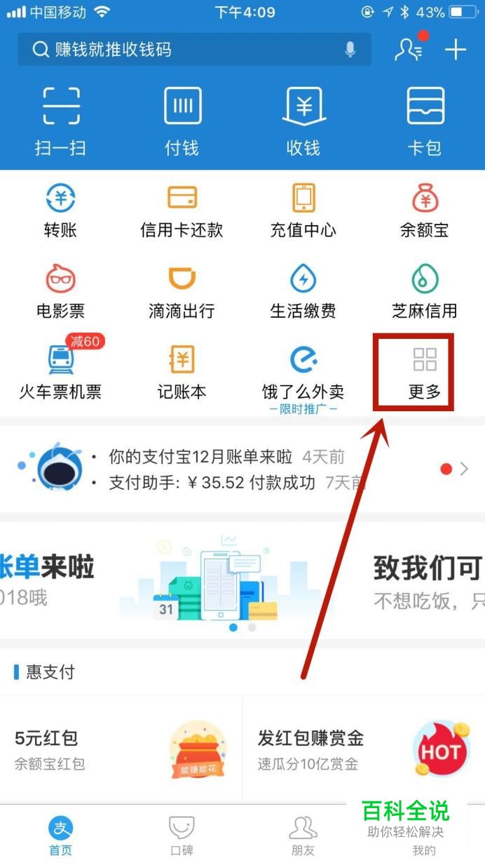 首先点击支付宝中的更多,如下图所示。