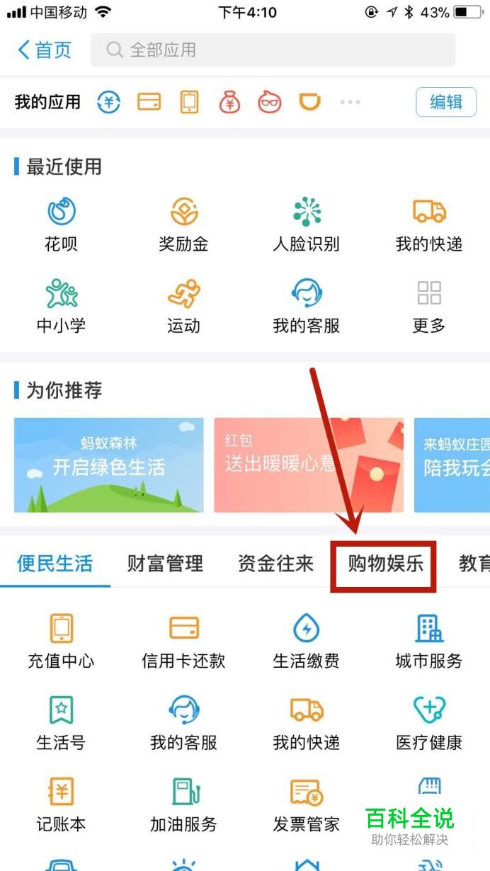 然后点击购物娱乐,如下图所示。