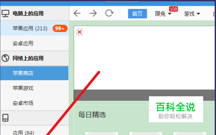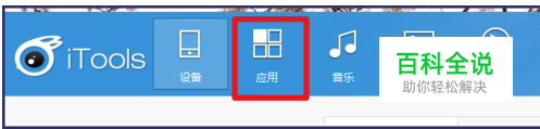 .首先打开itools,将设备连接到电脑,然后点击上方的【应用】