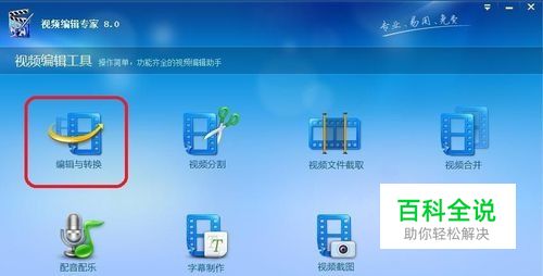 首先打开视频编辑专家,在第一界面,点:“编辑与转换”。