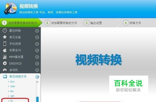 选择好要转换成的格式,如图选FLV格式,再添加要处理的视频文件。