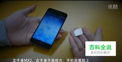 首先,左手拿MX2,右手拿开盖拨片,手机屏幕朝上