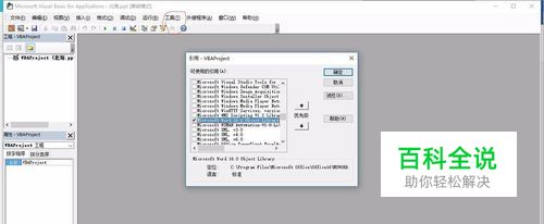 然后点击顶部的“工具”菜单,选择引用,找“Microsoft Word X.0 Object Library”(其中X与你的OFFICE版本有关),钩上,点确定