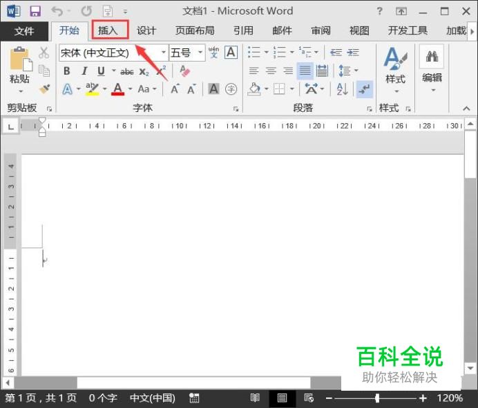 打开word这款软件之后我们在菜单里找到插入菜单,如图所示: