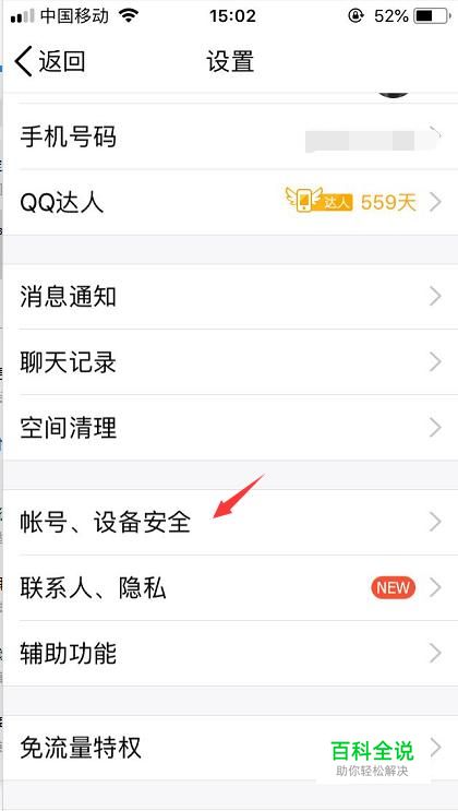 在设置功能里面往下拉,直到看到账号、设备安全就点击进入。