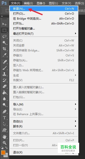 打开Photoshop软件之后,点击文件中的新建,开始创建一个画布。