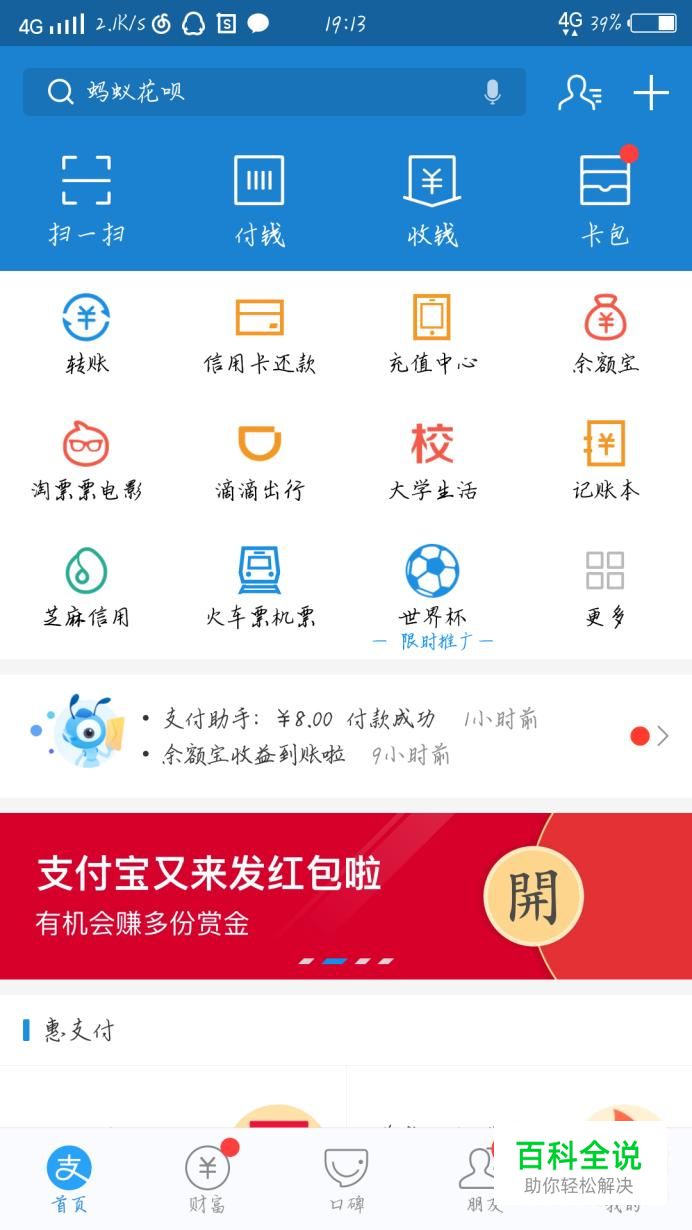 首先打开支付宝这个app,如图1所示。进入支付宝后会看到一个新的界面,如图2所示。