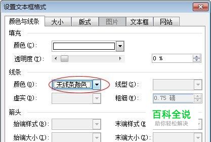 将文本框边框颜色设置为透明。右键单击“文本框”,然后选择“设置文本框格式”,在弹出的“设置文本框格式”中选择“颜色与线条”,将“线条”下面的颜色设置为“无线条颜色”,确定;