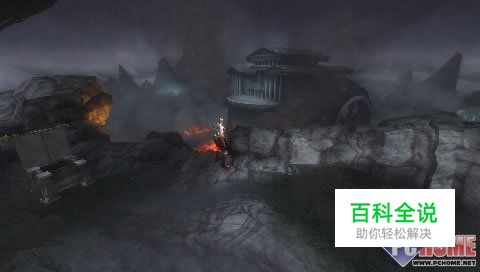 推到头以后,往左边走,会跳出一只貌似“剑齿虎”的怪,会喷鬼火。干掉以后,不注意就好像没有路了。在右上角对着山砍吧,能砍出一条路。摆平2个弓箭手,爬上建筑,这里可以看到3匹马,下面有把手可以转,此时不用在这里费时间,因为时机未到。在这里的注释会告诉你,这里是北神的住所,火焰马的寺,上面三匹是太阳神的火焰马。 第二章结束,接下去就进入了谜一样的太阳神殿了。