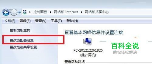 进入网络和共享中心之后,我们再点击左侧的“更改适配器设置”,如下图: