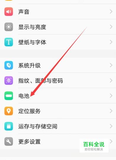 进入设置后,找到“电池”选项,点击并进入,如图所示。