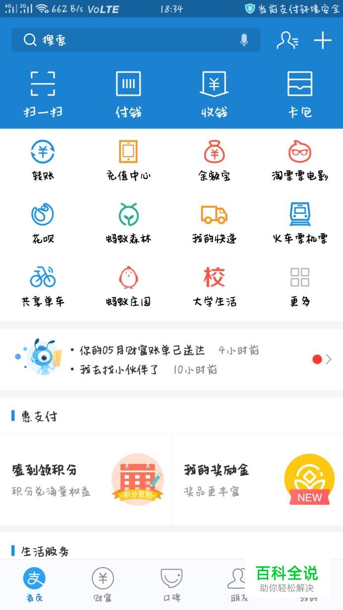 首先打开支付宝,在支付宝首页的顶端,就有收钱码和付款码的选项。