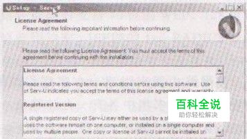 步骤2:进入使用软件的协议告知界面,选中accept the agreement单选按钮后,单击 NEXT按钮,如2所示。 图1 Serv-U安装界面 图2 Serv-U协议告知界面