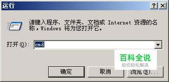 点击电脑左下角的开始 > 运行,弹出一个运行对话框,在里面输入“cmd”三个字母,然后按确定键;