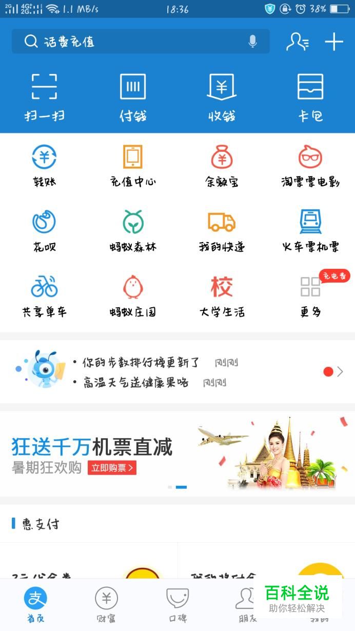 进入支付宝首页,点击共享单车,选择ofo进入后,选择右下角的钱包。