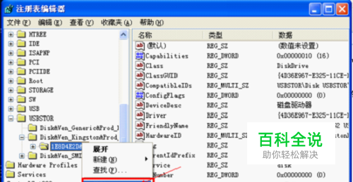 找到硬件相关信息,我的U盘的硬件相关信息是: 类型Disk&Ven_Kingston&Prod_DT_101_G2&Rev_1.00 将对应记录删除,具体操作时右键选中“删除”。如图: