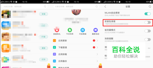 安装包清理 在软件商店下载的程序,安装完成之后安装包还会一直占用内存,开启安装包清理之后,手机在每次安装程序的时候自动将安装包删除以释放内存;