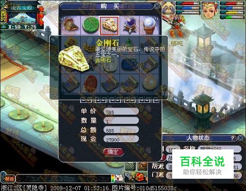 首先,我们以金刚石 作为一个参考物 灵隐寺的金刚石价格 大约为 100W/个而杨戬所在处的兑换最低价格为585分如图1所示 由此我们可以大约计算出:1点神器积分的价格大约=1000000两/585分=1709两/分 有了这组数据作为参考,就很容易的可以对比出换其它物品的价值