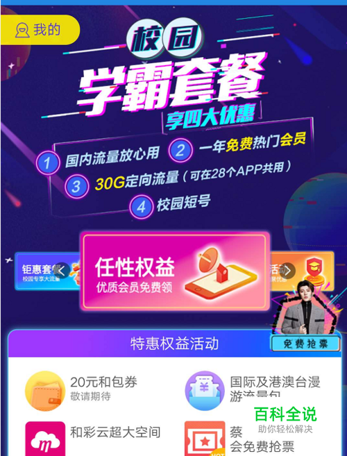 学霸流量套餐不仅有比较多的流量,而且还有1年的免费的【视频vip会员】领取。有很多小伙伴开通的了学霸套餐之后,都不知道如何领取视频会员。 这里就来教大家如何领取免费的视频vip会员?