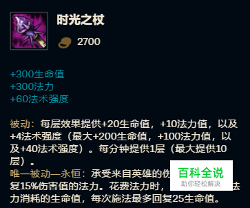 时光 法术坦克基本都会出的装备,有生命值,有法力值,而且都加得比较高