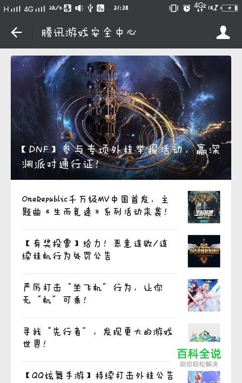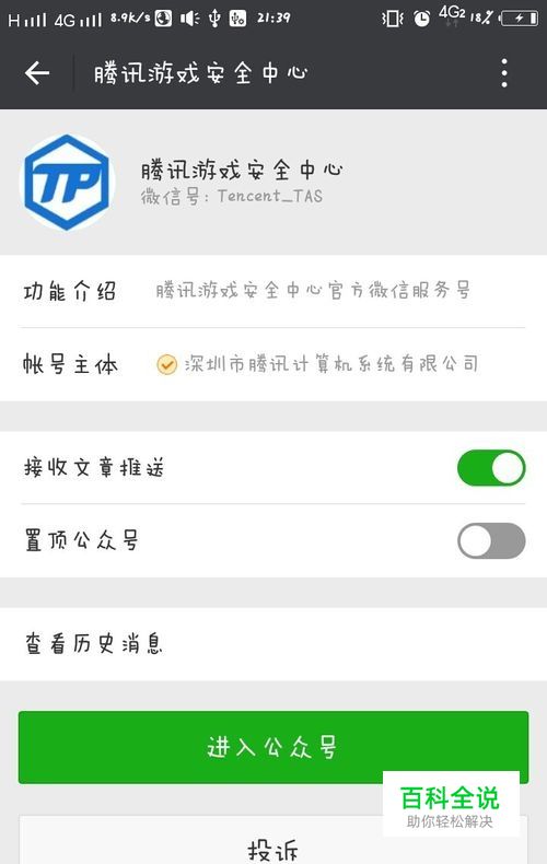 首先我们打开微信,点击查询公众号,搜索腾讯游戏安全中心关注后,进入公众号。