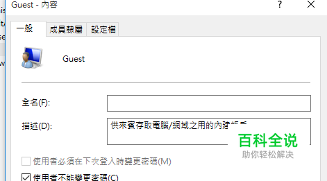 被共享的打印机主机电脑需要开启Guest用户,右击“我的电脑”—“管理”—"本机使用者和群组"—“使用者”—双击“Guest”用户—去掉“账户已停用”勾