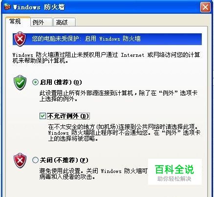 方法一: 这个方法很简单,同时也很有效,直接把系统自带的防火墙开了,同时也把“不允许例外”的勾也选上。