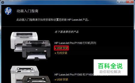 一般打印机都会带有驱动盘,如果没有的话建议去HP官网下载。进入文件夹双击setup.exe程序,进入安装界面。点击“USB 安装”按钮。