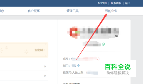 成功登录企业微信管理后台后,直接点击右上角的【我的企业】,如下图所示。