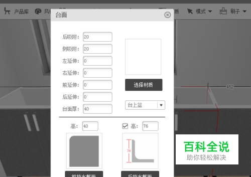 选择不同的前档截水面、后档截水面以及台面材质,点击确定