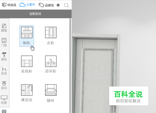 首先,在左侧选择定制系统里的橱柜系统