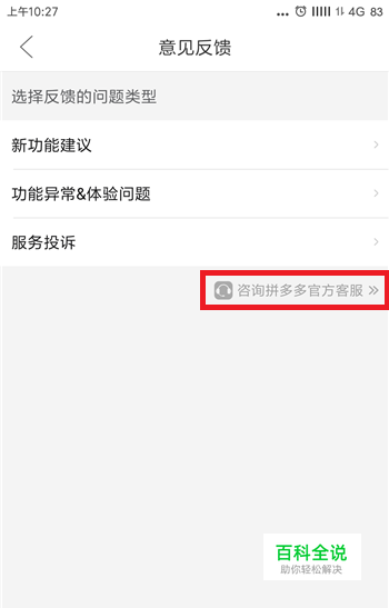 如果想要联系人工客服的话在意见反馈界面中点击【咨询拼多多官方客服】。