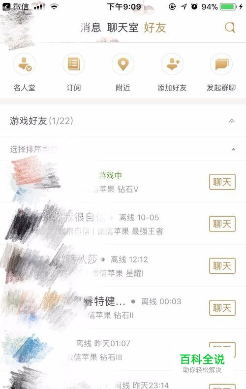 好友里面分为游戏好友,助手好友,我的群组等等。点开好友,我们选择一个头像点开。可以看到信息和最近比赛。还能选择排位赛和所有比赛。